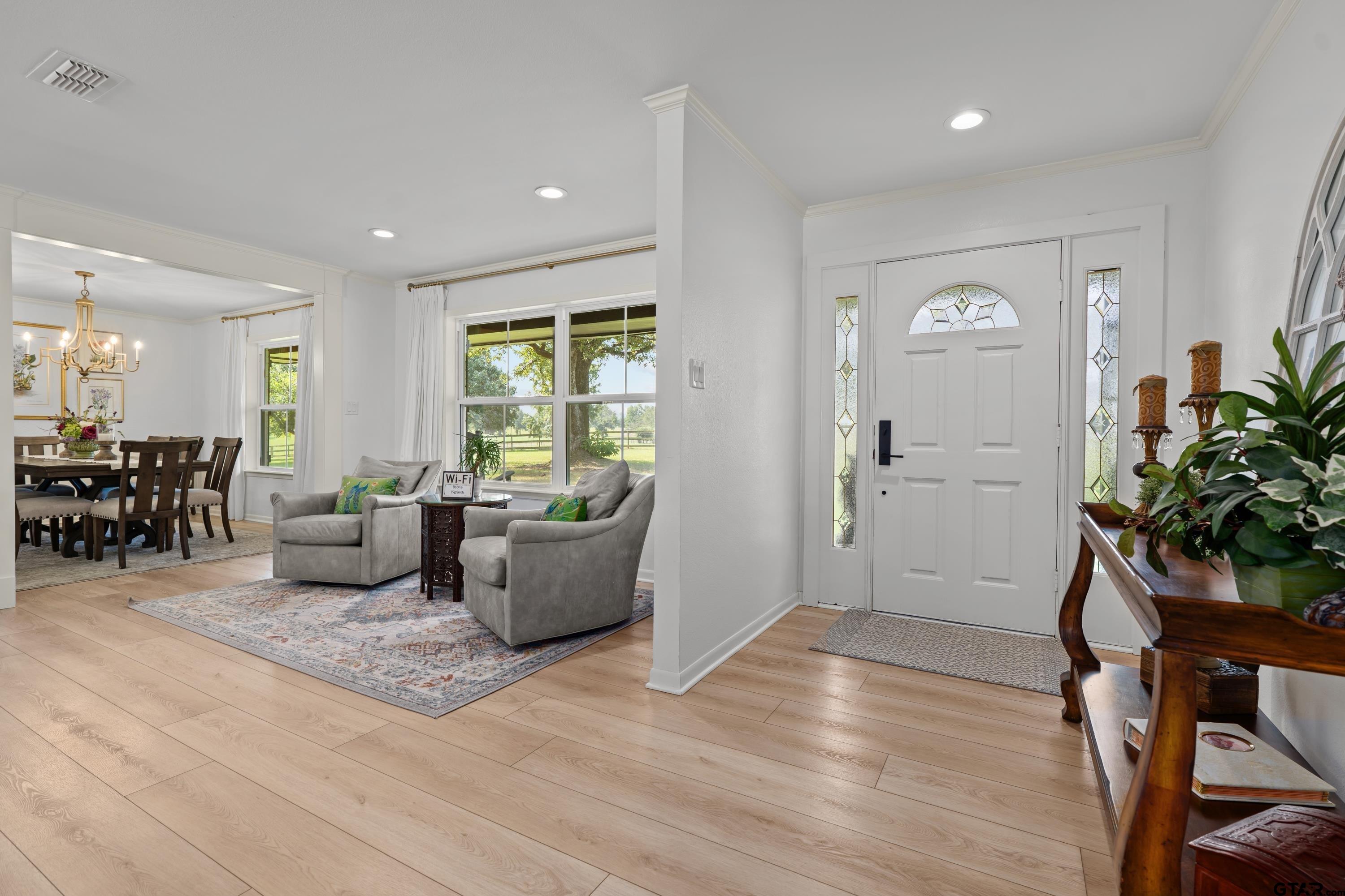 | Set on 30.132 acres—80% of which is lush, open pasture—this beautifully remodeled 2023 farm and ranch property in Lindale offers both elegance and utility. The 4,343 sq ft residence boasts 4 spacious bedrooms, 4 full baths, and a rare 4-car garage, providing comfort and space for large families or guests. Inside, thoughtful updates blend modern finishes with timeless country charm, creating a home that’s as functional as it is inviting. Expansive living areas, a gourmet kitchen, and serene bedroom suites make it perfect for both entertaining and everyday living. Fenced and cross-fenced pastures, a barn, working pens, and wide-open grazing land make this a turn-key setup for livestock or equestrian pursuits. Beyond the home, the property’s fertile soil, rolling terrain, and established fencing create endless opportunities for agriculture, hay production, or hobby farming. A seasonal pond and shaded creek add to the property’s natural appeal, offering water sources for both livestock and local wildlife. Here, productivity meets relaxation—you can work the land by day and enjoy peaceful Texas sunsets by night. Located just minutes from Lindale’s amenities, yet surrounded by the quiet beauty of the countryside, this is where modern comfort and rural living come together in perfect harmony. | |